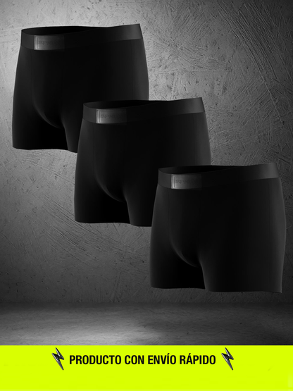 - Pack de 3 bóxers de largo medio confeccionado en algodón elástico extra suave con ajuste a la cadera alta. Hecho con elástico de 4cm de ancho, afelpado para un tacto suave, con compresión media y flexible, lo que entrega una sensación de comodidad, ideal para practicar deportes o de uso diario.